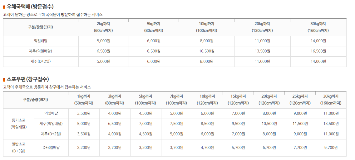 우체국 택배와 편의점 택배는 무게를 측정하고, 무게에 따른 과금이 설정됩니다.