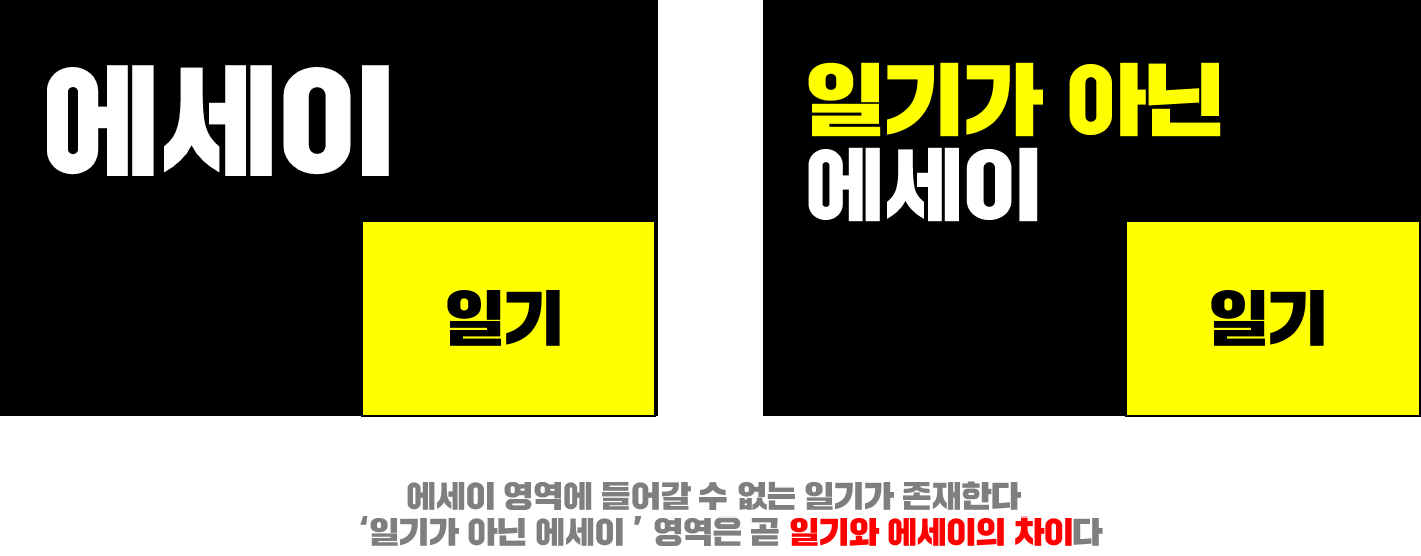 반드시 일기와 에세이의 차이점을 정확하게 짚고 넘어갈 필요가 있습니다.